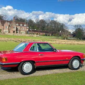 1988 Mercedes 300SL R107. Having only completed 37,000 miles from new, this car has just come out of a 33 year ownership with receipted work of roughly £13,500 since 2019 with less than 60-miles travelled since. It's finished in Signal Red and the paintwork is superb and unmarked throughout.
